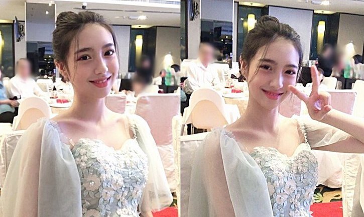 공개된 사진 속 김수정은 민트색드레스를 입고 천사 같은 미소로 카메라를 응시하고 있습니다.