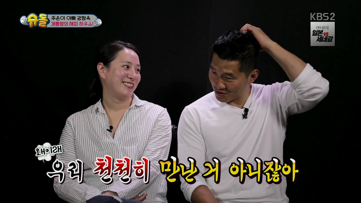 이후 두 사람은 강아지 산책 모임을 통해 만남을 이어갔다고 하는데요. KBS ‘슈퍼맨이 돌아왔다’에서는 당시 상황에 대한 두 사람이 언급이 상반되어 웃음을 주기도 했습니다. 해당 방송에서 강형욱은 ‘강아지 관련 산책 모임에서 만난 뒤 천천히 만나서 사귀게 됐다.’라고 말했는데요.