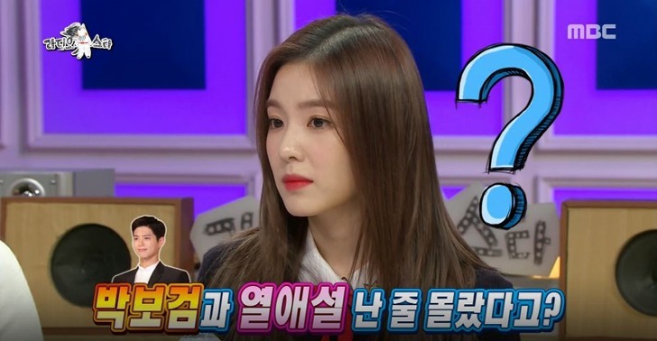 아이린은 ‘라디오스타’에서 박보검과의 열애설에 대한 질문에도 ‘전혀 몰랐다’라며 박보검의 미담을 알려달라는 말에 ‘밥을 잘 드시더라’라며 열애설을 일출할만한 철벽 멘트를 날리기도 했습니다.