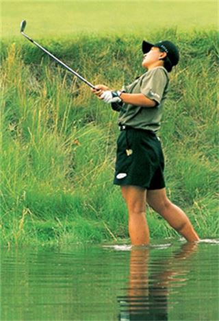1998년 미국 LPGA투어에 참가한 골프선수 박세리. 그녀는 양말을 벗고 연못에 들어가 완벽한 샷을 날려 큰 화제가 됐습니다.
