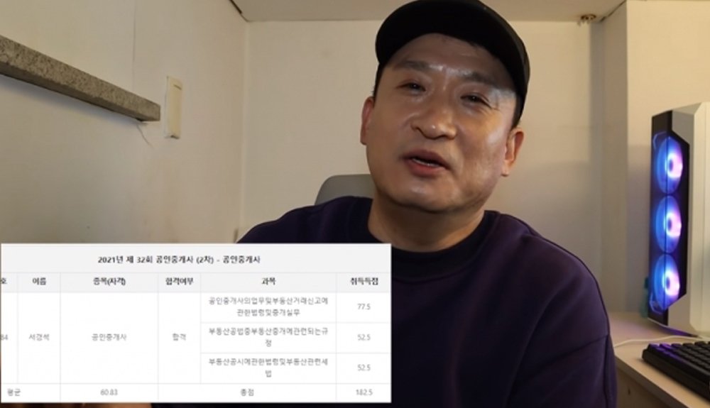 그런 그가 개인 유튜브 채널에서 새로운 도전을 위해 ‘공인중개사’ 시험을 준비 중이라고 밝혔습니다. 서경석은 2020년 6월에 공부를 시작해, 2020년 10월 1차 시험을 봐 합격, 2021년 10월 2차 시험을 봐 합격했다고 밝혔습니다.
