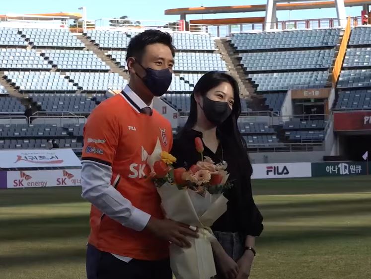 2022년 구자철이 해외생활을 청산하고 K리그1 제주 유나이티드로 복귀하게 되면서 K리그1경기 직관 가능성이 예상되었는데, 실제로 2022년 3월 6일 구자철의 입단식이 예정되어 있었던 수원 FC전에 특별 게스트로 제주월드컵경기장까지 직접 방문해 꽃다발을 전달하였고, 이에 구자철은 답례로 ’42번 신예은’이 마킹된 제주 유니폼을 전달했습니다.