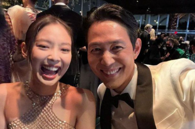 이정재와 제니가 ‘LA 아트 필름 갈라’에서 만나 활짝 웃음을 지으며 투샷을 남겼습니다. 이정재는 “제가 평상시에 블랙핑크의 아주 열렬한 팬은 사실은 아니지만, 호연 씨하고 제니 씨하고 친분이 두텁더라. 저희 ‘오징어 게임’ 현장에 제니 씨가 커피차와 함께 방문을 하셔서 저도 ‘우와! 블랙핑크 제니다!’하고 신기해했다”고 했습니다.