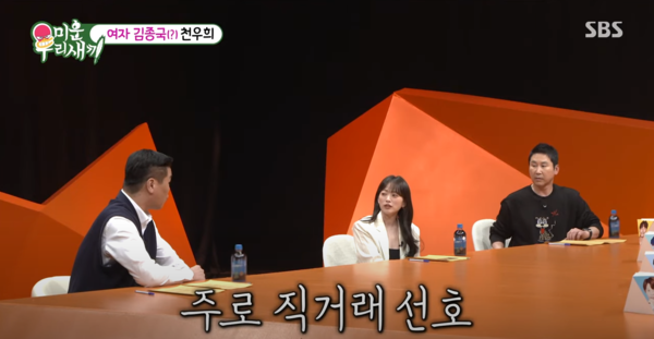 천우희는 주로 주방용품이나 운동 소도구를 판매한다고 하는데요. 이에 서장훈 MC가 “종국이 어머님이 굉장히 흐뭇하게 보신다”고 말해 스튜디오의 웃음을 자아냈습니다.