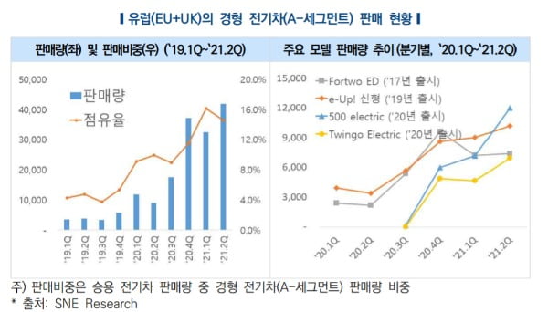 한국자동차연구원은 이같은 내용이 담긴 ‘가격경쟁의 서막을 여는 유럽의 경형 전기차’ 제하 산업동향 보고서를 5일 발표하고 유럽에서 주행거리를 늘리고 가격은 낮춘 경형 전기차 판매량이 확대됐다고 진단했는데요.
