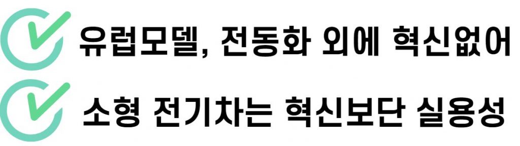 한 자동차연구원은 “유럽의 3개 모델은 전동화 외에 혁신적 특성을 찾아보기 어렵다”라며 “경형 전기차 시장이 혁신성보다는 실용적 소비를 중심으로 부상할 가능성을 보여준다”라고 설명했습니다.