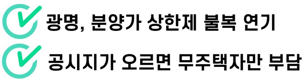 분양가상한제 하에서 책정된 분양가를 수용할 수 없다고 내년으로 분양을 미룬 광명시 광명동 광명2R 재개발 구역에선 구역 내 표준지 공시지가가 적게는 15%, 많게는 18%까지 올랐습니다. 공시지가가 올해보다 오른만큼 더 높은 분양가를 요구할 명분이 생겼습니다.