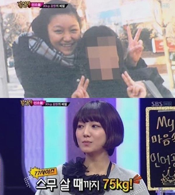 몸무게가 75kg까지 나갔었다고 밝힌 신소율은 “남자친구에게 잘 보이려고 살을 뺐다. 술자리에서 잠들었다가 깼는데 남자친구의 지인들이 나를 가리키며 살을 좀 빼야 하는 것 아니냐고 하는 말을 들었다”라며