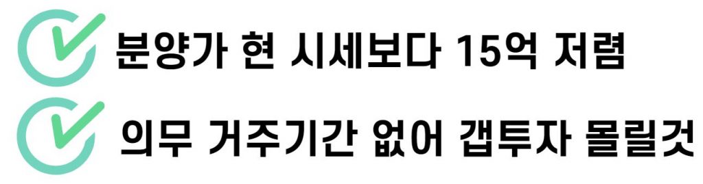 분양가가 현 시세보다 15억원 이상 저렴해 전셋값보다 쌉니다. 현재 시장에 나온 이 주택형의 전세보증금 시세는 최소 14억 원에서 최고 23억 원에 형성돼 있습니다. 의무 거주 기간이 없어 전세보증금을 끼고 잔금을 치르는 ‘갭투자’ 수요가 몰릴 전망입니다.