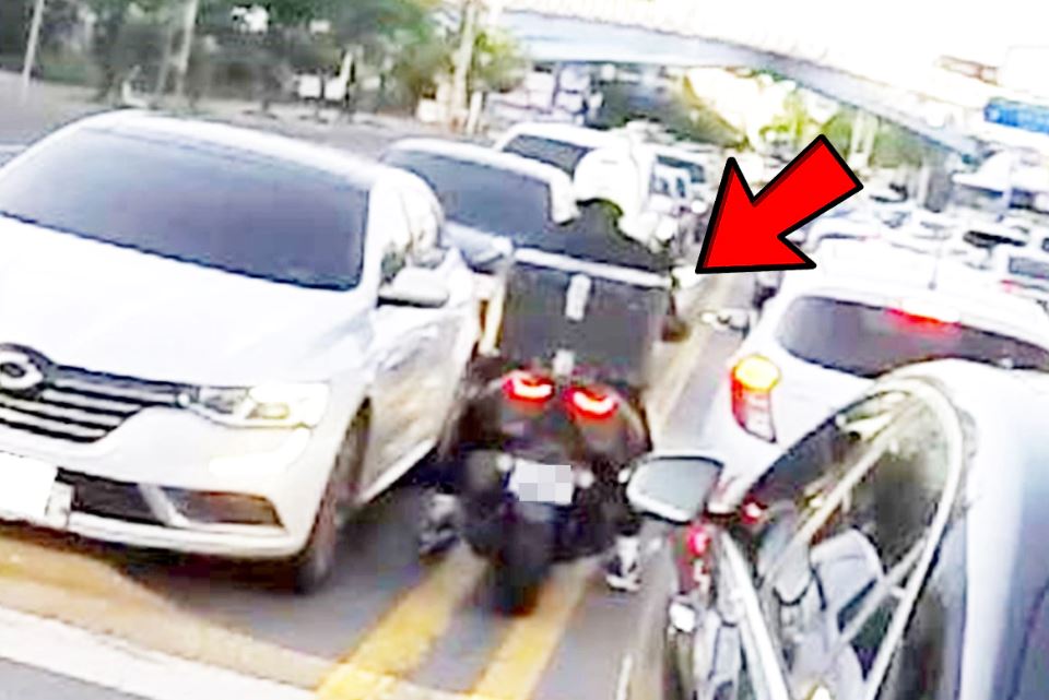 해당 운전자는 양쪽으로 꽉 막힌 도로에서 조금이라도 더 빨리 앞으로 가는 방법을 찾다가 이런 기행을 시도한 것으로 보입니다.